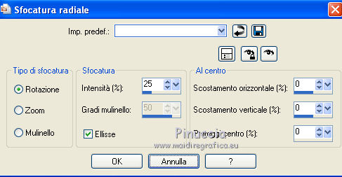 13. Regola>Sfocatura>Sfocatura radiale, con i settaggi precedenti.