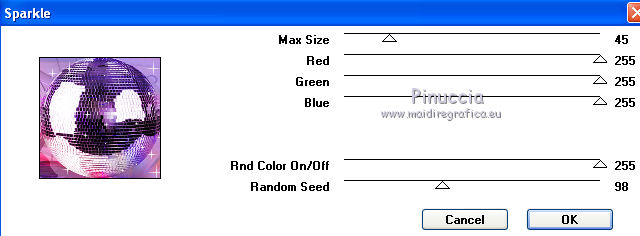 Ripeti l'Effetto Sparkle impostando Random Seed a 98.