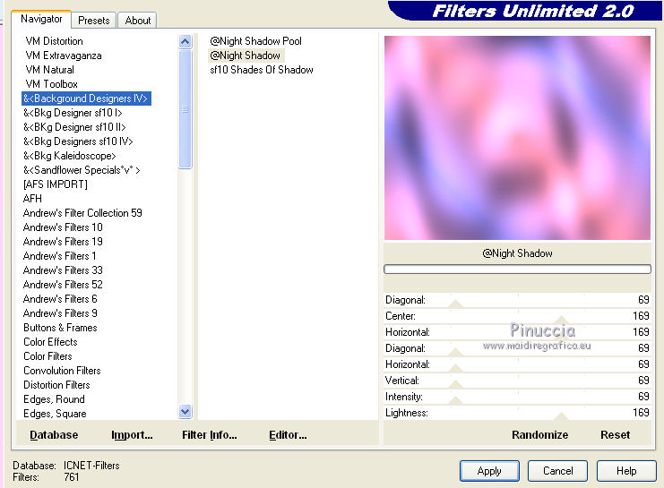 39. Effetti>Plugins>Filters Unlimited 2.0 - Background Designers IV - Nigh Shadow, con i settaggi standard.