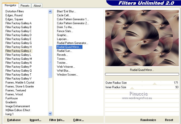 9. Effetti>Plugins>Filters Umlimited - Filter Factory Gallery J - Radial Quad Mirror, con i settaggi standard.