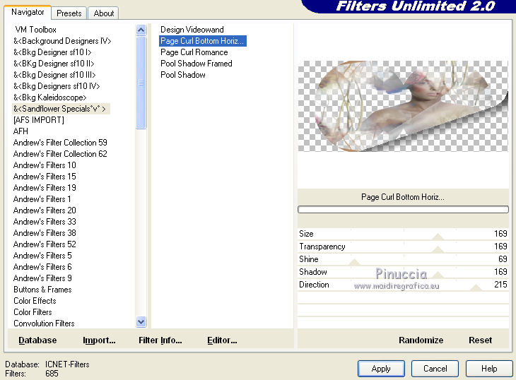 13. Effetti>Plugins>Filters Unlimited 2.0 - Sandflowers special - Page curl bottom horiz, con i settaggi standard.