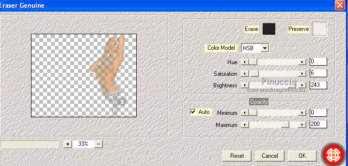 18. Effetti>Plugins>Mehdi - Eraser Genuine, con i settaggi standard.