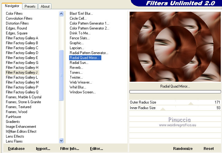 10. Effetti>Plugins>Filters Unlimited - Filter Factory Gallery J - Radial Quad Mirror, con i settaggi standard.