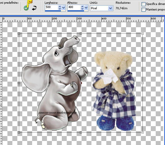 e seleziona la proboscide dell'elefantino e il fazzoletto dell'orsetto.