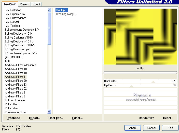 4. Effetti>Plugins>Filters Unlimited - Andrew's Filter 1 - Blur up.