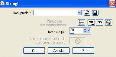 Ripeti Effetti>Effetti di distorsione>Stringi, riportando il settaggio a 20.