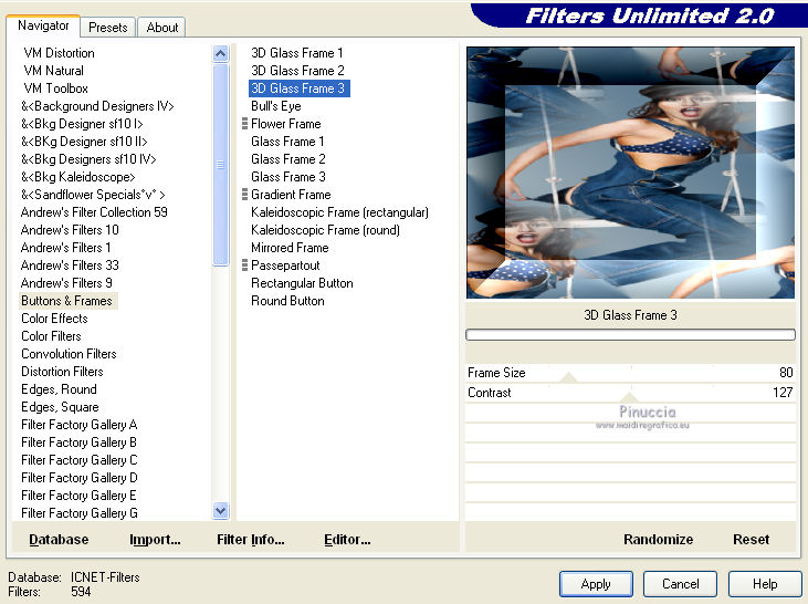 7. Effetti>Plugins>Filters Unlimited 2.0 - Buttons and Frames - 3D Glass Frame 3.