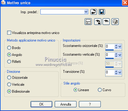 5. Effetti>Effetti di immagine>Motivo unico, con i seguenti settaggi.