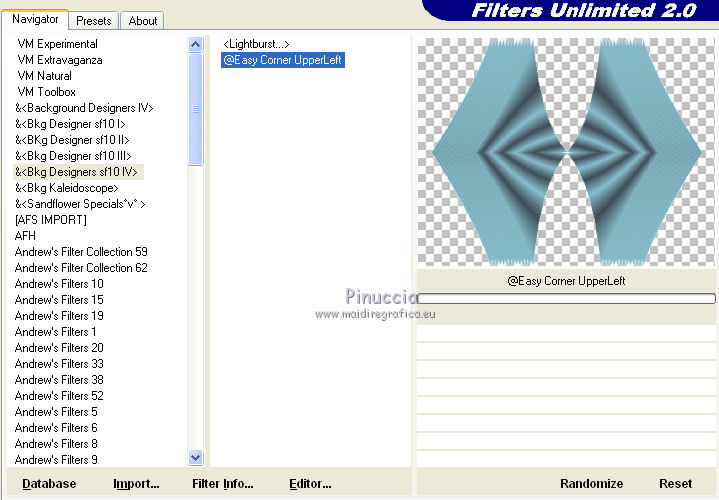 13. Effetti>Plugins>Filters Unlimited 2.0 - Bkg Designers sf10 IV- Easy Corner Upperleft.