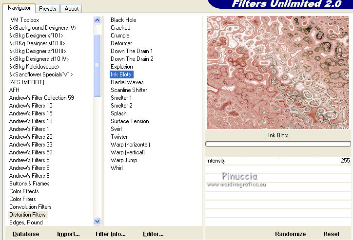 3. Effetti>Plugins>Filters Unlimited - Distortion Filters - Ink blots.