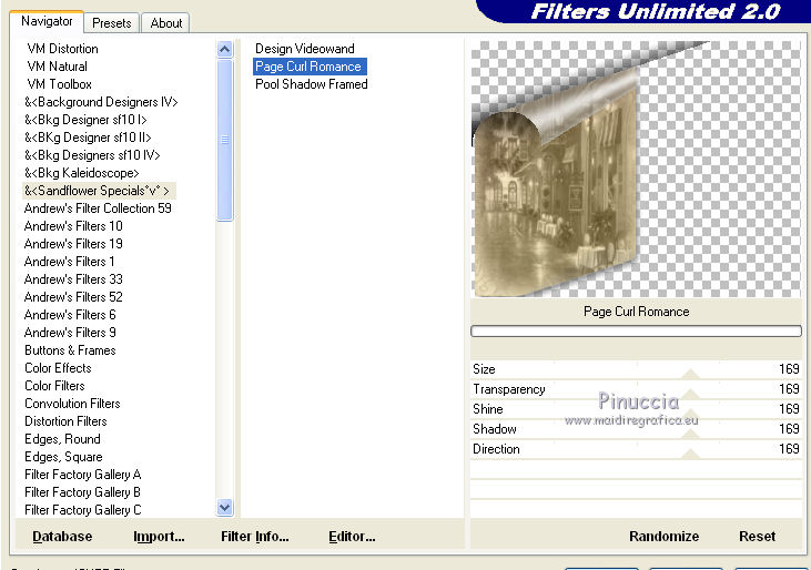 17. Effetti>Plugins>Filters Unlimited 2.0 - Sandflowers special - Page crul romance, con i settaggi standard.