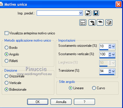 5. Effetti>Effetti di immagine>Motivo unico, con i seguenti settaggi.