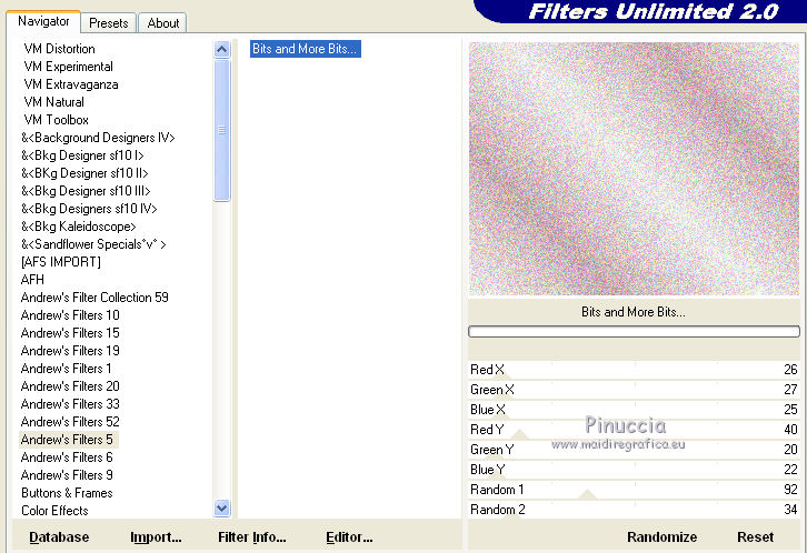 19. Effetti>Plugins>Filters Unlimited - Andrew's filters 5 - Bits and more bits, con i settaggi standard.