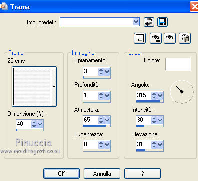 5. Effetti>Effetti di trama>Trama - seleziona la trama 25-cmv con i seguenti settaggi: