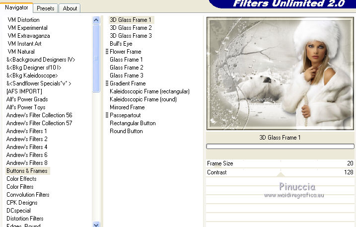 Effetti>Plugins>Filters Unlimited 2.0 - Buttons & Frames - 3D Glass Frame 1.