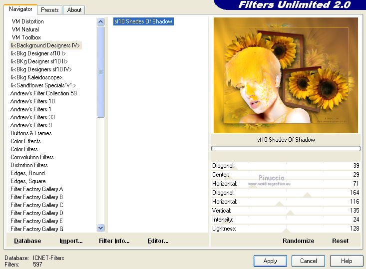20. Effetti>Plugins>Filters Umlimited - Background Designer IV - sf10 Shades of Shadow, con i settaggi standard.