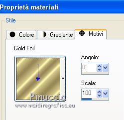 23. Passa il colore di sfondo a Motivi e seleziona un motivo oro con i seguenti settaggi.