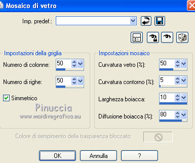 Effetti>Effetti di trama>Mosaico di vetro, con i settaggi precedenti.