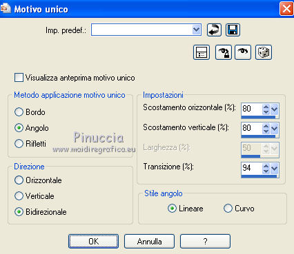 8. Effetti>Effetti di immagine>Motivo unico, con i settaggi precedenti.