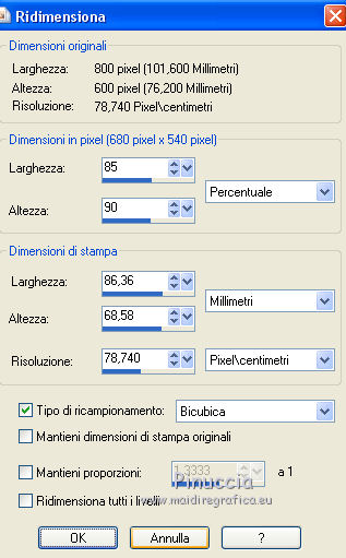 17. Immagine>Ridimensiona, 85 x 90%, tutti i livelli e mantieni proporzioni non selezionato.