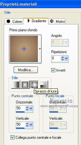 Cambia i settaggi del gradiente, stile Sprazzo di luce.
