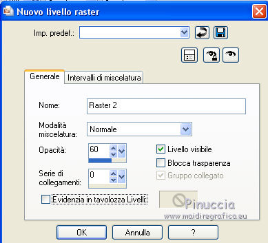 9. Livelli>Nuovo livello raster e approfitta della finestra che si apre per abbassare l'opacità al 60%.