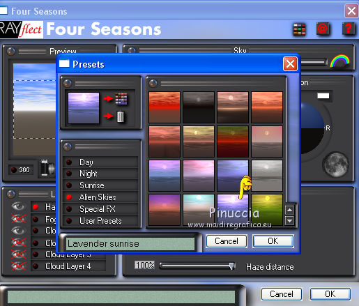 Scegli il preset in armonia con le tue immagini; per il mio esempio ho scelto Alien skies e Lavender sunrise,
