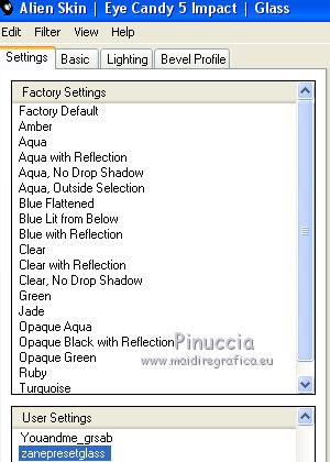 Effetti>Plugins>Alien Skin Eye Candy 5 Impact - Glass,