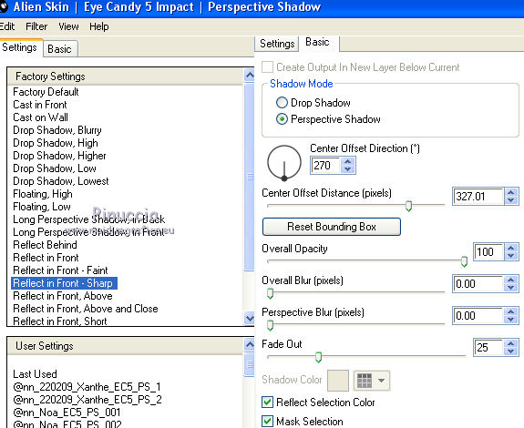 Effetti>Plugins>Alien skin Eye Candy 5 Impact - Perspective Shadow, con i settaggi precedenti