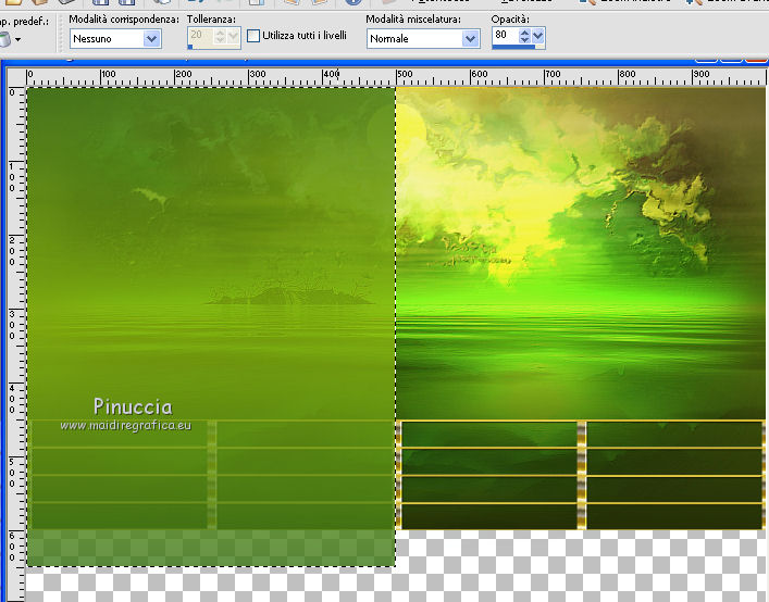e riempi la selezione con il gradiente (opacità sempre a 80).