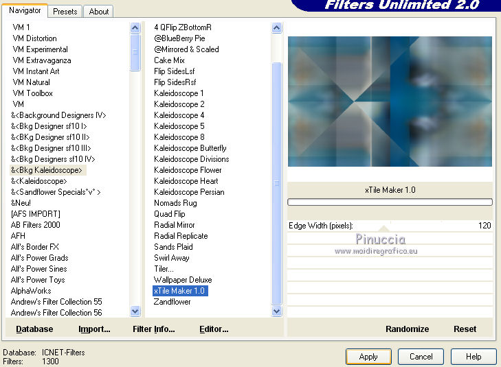 6. Effetti>Plugins>Filters Unlimited 2.0 - &<Bkg Kaleidoscope> - xTile and Maker.