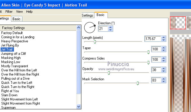 17. Effetti>Plugins>Alien Skin Eye Candy 6 Impact - Motion Trail.