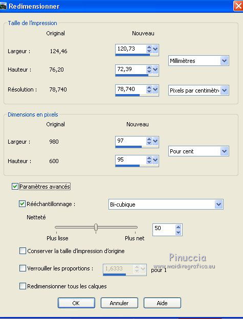 16. Image>Redimensionner - 97 x 95%, redimensionner tous les calque et Verrouiller les proportions décoché.