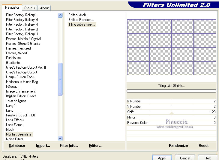 I filtri Factory Gallery e Mura's Seamless si possono usare da soli o importati in Filters Unlimited