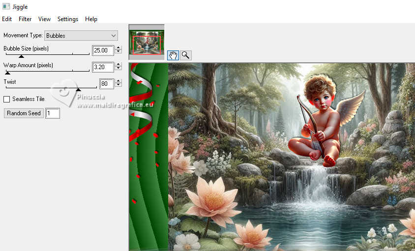 Répéter Effets>Modules Externes>Eye Candy 4000 - Jiggles, comme précédemment, mais cliquer une fois sur Random et ok.