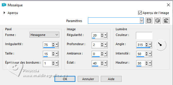 6. Effets>Effets de textures>Mosaïque - couleur #ffffff.