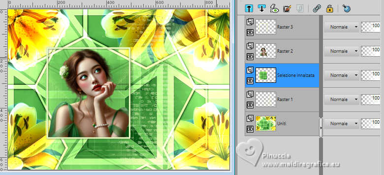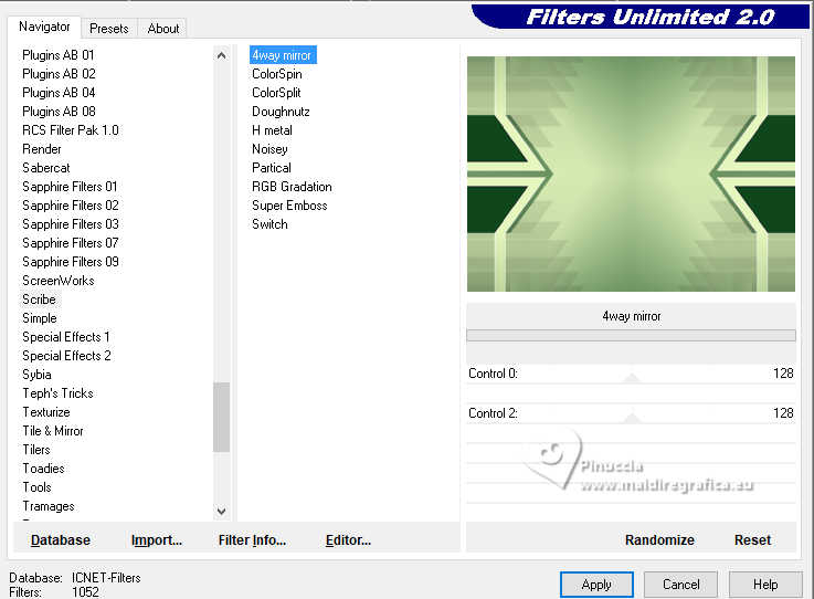 Effetti>Plugins>Filters Unlimited 2.0 - Scribe - 4 Way Mirror, con i settaggi standard.