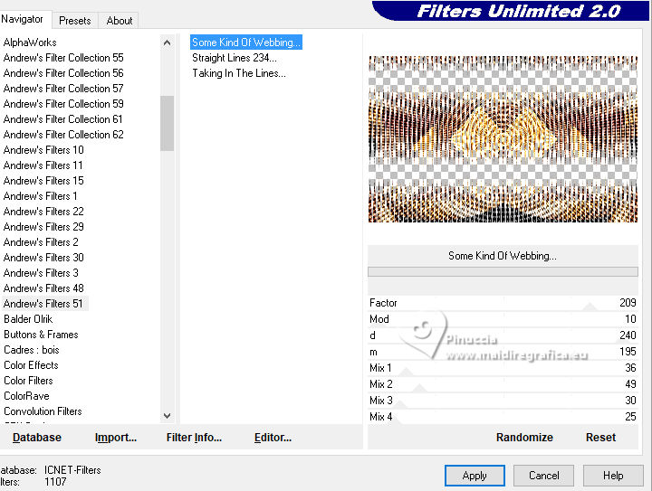 Effetti>Plugins>Filters Unlimited 2.0 - Andrew's Filter 51 - Some Kind of Webbing.