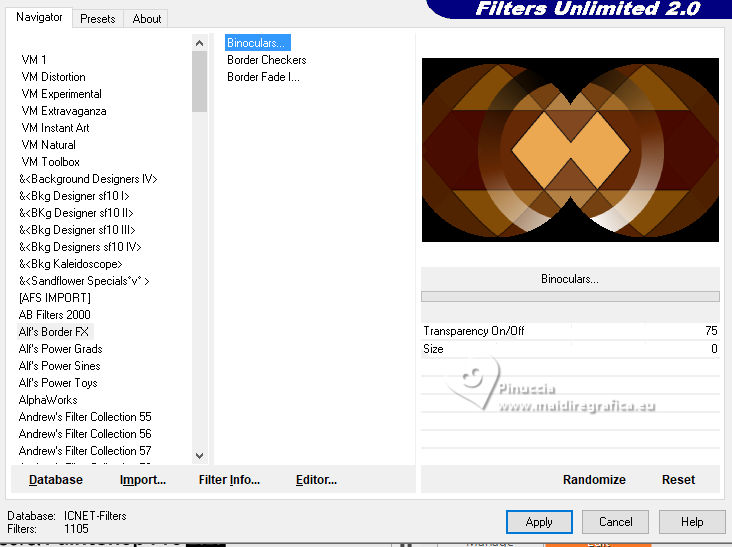 9. Effetti>Plugins>Filters Unlimited 2.0 - Alf's Border FX - Binoculars, con i settaggi standard