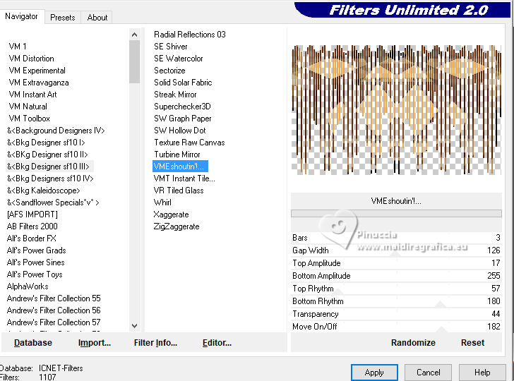 Effetti>Plugins>Filters Unlimited 2.0 - &<Bkg Designer sf10III> - VMEshouting'!