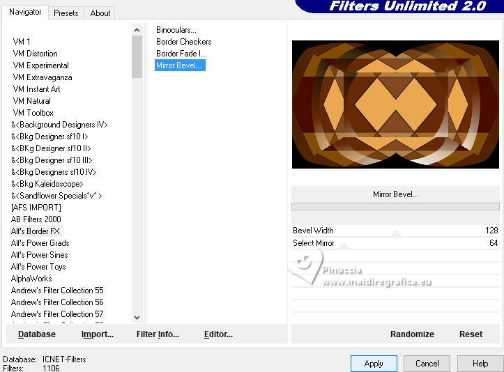 Effetti>Plugins>Filters Unlimited 2.0 - Alf's border FX - Mirror Bevel, con i settaggi standard.