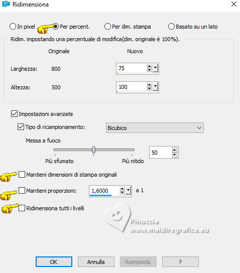 Immagine>Ridimensiona, al 90%, mantieni proporzioni selezionato, ridimensiona tutti i livelli non selezionato.