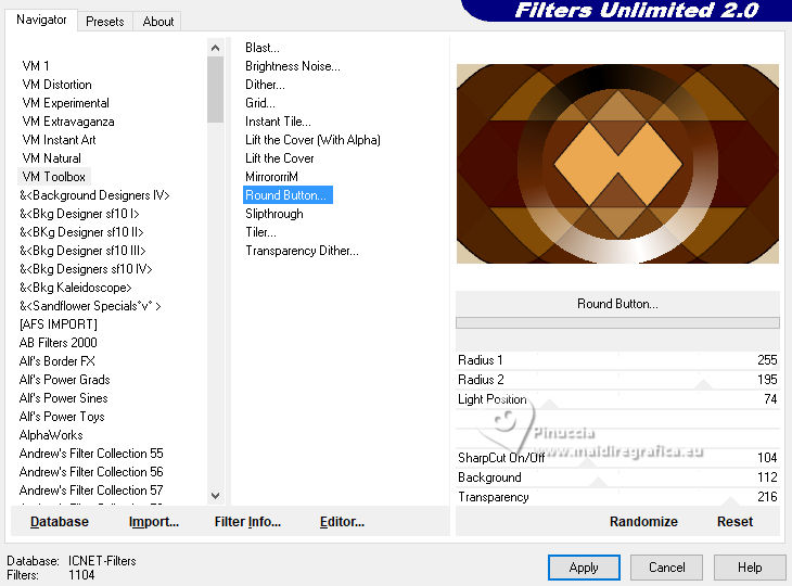 8. Effetti>Plugins>Filters Unlimited 2.0 - VM Toolbox - Round Button.