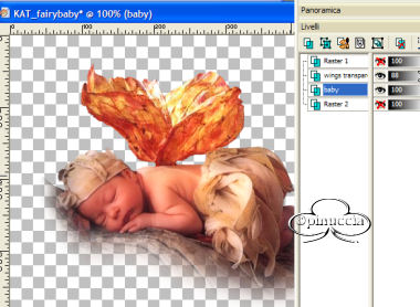 Nascondi i livelli di sfondo e lascia attivi i livelli delle ali e del bambino: