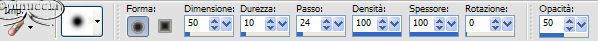 15. Attiva lo strumento Gomma con i seguenti settaggi:
