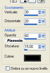 Effetti>Effetti 3D>Sfalsa ombra, con i seguenti settaggi.