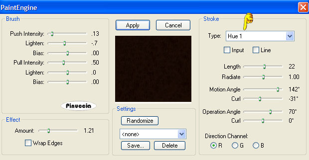 Effetti>Plugins>Fantastic Machines - Paint Engine, con i seguenti settaggi,