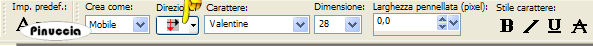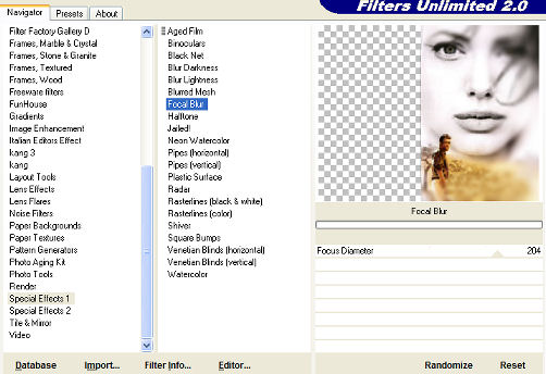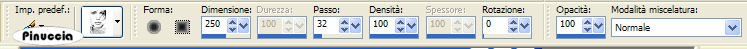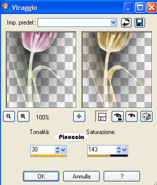 qui puoi trovare qualche risposta ai tuoi dubbi. Se l'argomento che ti interessa non è presente, ti prego di segnalarmelo. Questo tutorial è stato realizzato con PSP X. Occorrente: il tube di una donna, un pennello, 2 font, una maschera, una cornice e diversi elementi scrap qui Il tube è di "Brigitte", gli elementi scrap sono di "Melissa". Filtro Eye Candy 4000 qui in caso di problemi, qui trovi alcuni appunti. Se non hai trovato la risposta che cercavi, per favore, fammelo sapere. Questo tutorial è stato scritto con PSP X. Per tradurlo l'ho eseguito con PSP 9. Occorrente: Materiale qui Nello zip trovi l'immagine, i pennelli e il font. Ti occorre anche il tube di un tulipano a scelta. L'immagine utilizzata viene dal web. Se ti appartiene, ti ringrazio fin d'ora se me lo farai sapere, in modo che possa aggiungere un credito al tuo lavoro. Il pennello "logostamp-Kris" viene da questo sito se hai problemi con i pennelli vedi qui Filtri: Xero qui Filters Unlimited 2.0 qui 1. Apri l'immagine "g38i". Duplicala (shift+D) e chiudi l'originale. 2. Apri una nuova immagine trasparente 500 x 400 pixels. 3. Attiva la copia di "g38i". Immagine>Rifletti. Modifica>Copia. Torna alla tua immagine trasparente e vai a Modifica>Incolla>Incolla come nuovo livello. 4. Spostala completamente a destra.5. Effetti>Effetti di bordo>Erodi. 6. Effetti>Plugins>Filters Unlimited 2.0 - Special Effect 1 - Focal Blur, imposta a 204. ![]() Livelli>Unisci>Unisci tutto (appiattisci). Livelli>Nuovo livello raster. 7. Imposta il colore di primo piano con il colore scuro 1a1a12, e il colore di sfondo con il colore chiaro #e1ca94. 8. Attiva lo strumento Pennello ![]() cerca e seleziona il pennello "Pinceau_50", dimensione 250, e applicalo a fianco dell'immagine. ![]() Livelli>Nuovo livello raster. 9. Attiva lo strumento Penna ,larghezza 1, antialias selezionato, limite giunto 15: ![]() Traccia delle linee attorno alla piccola immagine. (Se necessario, per facilitare l'operazione, usa lo zoom ).tenendo premuto il tasto shift, otterrai delle linee diritte ![]() 10. Chiudi il livello di sfondo. Posizionati su uno degli altri livelli. 11. Livelli>Unisci>Unisci visibile. 12. Riapri il livello di sfondo. Posizionati sul livello Uniti. ![]() 13. Effetti>Effetti 3D>Sfalsa ombra, con i seguenti settaggi: ![]() 14. Abbassa l'opacità di questo livello al 50%. ![]() 15. Livelli>Duplica. Immagine>Ridimensiona, al 50%, tutti i livelli non selezionato. 16. Sposta questa piccola immagine in alto a sinistra.(vedi l'immagine finale). 17. Attiva nuovamente lo strumento Penna con i settaggi precedenti,e traccia delle linee intorno all'immagine, comprendendo l'occhio dell'immagine più grande. ![]() 18. Livelli>Converti in livello raster. Abbassa l'opacità di questo livello al 50%. 19. Effetti>Effetti 3D>Sfalsa ombra, con gli stessi settaggi del passo 13. Livelli>Unisci>Unisci visibile. 20. Attiva lo strumento Selezione , rettangolo:![]() Seleziona la bocca della donna: ![]() 21. Modifica>Copia. Modifica>Incolla>Incolla come nuova immagine. 22. Ritorna al tuo lavoro. Selezione>Nessuna selezione. (per chi usa PSP X: Selezione>Deseleziona). Livelli>Nuovo livello raster. 23. Attiva nuovamente lo strumento Selezione , rettangolo,con gli stessi settaggi del passo 20. Traccia un rettangolo in basso a sinistra: ![]() 24. Attiva la piccola immagine con le labbra e vai a Modifica>Copia. Torna al tuo lavoro e vai a Modifica>Incolla>Incolla nella selezione. 25. Abbassa l'opacità di questo livello al 50%. Selezione>Nessuna selezione. ![]() Livelli>Nuovo livello raster. 26. Attiva lo strumento Pennello , con gli stessi settaggi del passo 8, dimensione 480,e applica il pennello "Pinceau_Yuna_34" a sinistra della tag al limite dell'immagine piccola (sempre con il colore scuro impostato come colore di primo piano). ![]() 27. Abbassa l'opacità di questo livello al 30%. Livelli>Nuovo livello raster. 28. Cerca e seleziona il pennello "logostamp12-kris" (con gli stessi settaggi, dimensione 100), (sempre con il colore scuro impostato come colore di primo piano) e applicalo a destra (vedi l'immagine finale). 29. Abbassa l'opacità di questo livello al 50%. Effetti>Effetti 3D>Sfalsa ombra, con gli stessi settaggi del passo 13. 30. Livelli>Nuovo livello raster. 31. Imposta il colore scuro come colore di sfondo. Attiva lo strumento Testo , direzione verticale a destra,![]() ![]() L'autrice del tutorial originale, usando PSP X, con un nome di quattro lettere, ha usato la dimensione 130 punti e crenatura a -375. Nella schermata sopra vedrai le mie impostazioni, con PSP 9 e con un nome più lungo. Forse anche tu dovrai regolare dimensione e crenatura per adattarli alla lunghezza del tuo nome e secondo la versione che stai usando. Ricorda che le dimensioni di PSP X - anche in pixels - non danno lo stesso risultato nelle versioni precedenti. qui, in fondo alla pagina, trovi alcuni appunti su queste differenze. 32. Scrivi il tuo testo a sinistra della tag (vedi l'immagine finale). Selezione>Nessuna selezione. 33. Abbassa l'opacità di questo livello al 50%. 34. Effetti>Effetti 3D>Sfalsa ombra, con gli stessi settaggi del passo 13. 35. Apri il tube del tulipano che hai scelto e vai a Modifica>Copia. Torna al tuo lavoro e vai a Modifica>Incolla>Incolla come nuovo livello. 36. Se necessario, ridimensionalo (Immagine>Ridimensiona) secondo il tuo gusto. Regola>Saturazione e tonalità>Viraggio: ![]() 37. Spostalo a sinistra, dove preferisci.38. Effetti>Effetti 3D>Sfalsa ombra, con gli stessi settaggi del passo 13. Livelli>Unisci>Unisci tutto (appiattisci). 39. Mantieni impostato il colore chiaro come colore di primo piano. Effetti>Plugins>Xero - Soft Vignette: ![]() 40. Immagine>Aggiungi bordatura, 1 pixel, simmetriche, con il colore nero. Salva in formato jpg. ![]() Se hai problemi o dubbi, o trovi un link non funzionante, o anche soltanto per un saluto, scrivimi. 31 Gennaio 2007 |