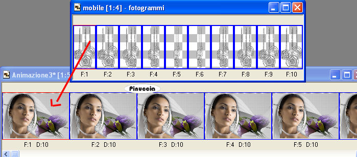 Dopo aver rilasciato il mouse vedrai "magicamente" svuotarsi il file dell'animazione che hai unito e i fotogrammi "trasferiti" sui fotogrammi del tuo lavoro.