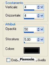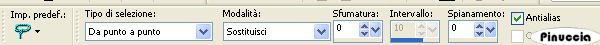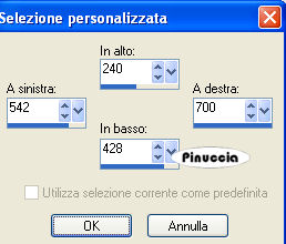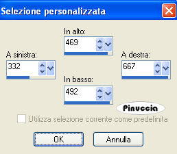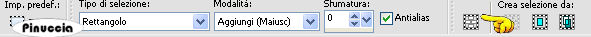 qui puoi trovare qualche risposta ai tuoi dubbi. Se l'argomento che ti interessa non è presente, ti prego di segnalarmelo. Questo tutorial è stato realizzato con PSP X. Occorrente: Materiale qui (comprendente la trama e due font). Il tube di una donna è di Filly. Gli elementi scrap sono di Dozibaer Filtri: FM Tile Tools qui Filter Unlimited 2.0 qui Bordermania qui Apri i tubes, duplicali (shift+D) e chiudi gli originali. Metti la trama nella tua cartella trame. Apri i font e minimizzali nella tua area di lavoro. Li troverai nella lista dei font disponibili. TAG REALIZZATA IN 6 PARTI Prima parte: Trama 1. Apri la trama "lee-text060". Immagine>Ridimensiona, a 700 x 525 pixels. ![]() 2. Effetti>Plugins>FM Tile Tools / Blend Emboss, con i settaggi standard: ![]() Seconda parte: Tube 3. Apri il tube "Misted_filly_(1141)Anna Kuznetsova" e vai a Modifica>Copia. Torna al tuo lavoro e vai a Modifica>Incolla come nuovo livello. Immagine>Rifletti. 4. Con lo strumento Spostamento sposta il tube un po' più a sinistra:(vedi schermata qui sotto) ![]() 5. Livelli>Duplica. Sposta la copia del livello in basso a destra.(vedi schermata) Nella paletta dei livelli abbassa l'opacità di questo livello al 22%. ![]() Terza parte: Cornice 1. Apri il tube "a-dozi's-photoframe-03" (cornice) e vai a Modifica>Copia. Torna al tuo lavoro e vai a Modifica>Incolla come nuovo livello. 2. Effetti>Effetti 3D>Sfalsa ombra, con i seguenti settaggi: ![]() 3. Apri il tube "a-dozi's-metal-shapes-23" (cuore). Attiva lo strumento Selezione e seleziona l'ultimo cuore a destra.Modifica>Copia. Torna al tuo lavoro e vai a Modifica>Incolla come nuovo livello. Immagine>Ridimensiona, 50%, tutti i livelli non selezionato: ![]() Spostalo in alto a sinistra nella cornice (vedi tag finale).4. Nella paletta dei livelli cambia la modalità di miscelatura di questo livello in Luminanza (esistente). Dovresti avere questo: ![]() 5. Effetti>Effetti 3d>Sfalsa ombra, con gli stessi settaggi usati prima. Quarta parte: Piccolo rettangolo 1. Attiva lo strumento Selezione/Selezione personalizzata: ![]() ![]() Livelli>Nuovo livello raster. 2. Imposta come colore di primo piano il colore bianco. Riempi la selezione con questo colore.3. Effetti>Plugins>Bordermania / Frame #2. ![]() 4. Selezione>Modifica>contrai, di 2 pixels. Livelli>Nuovo livello raster. 5. Imposta il colore blu chiaro #e0e9ee come colore di primo piano. Riempi la selezione con questo colore.Selezione>Deseleziona. 6. Effetti>Effetti 3D>Sfalsa ombra, con gli stessi settaggi usati finora. 7. Nella paletta dei livelli posizionati sul livello della copia del tube (quello con l'opacità al 22%) ![]() 10. Livelli>Disponi>Sposta sopra. Dovresti avere questo: ![]() 11. Nella paletta dei livelli, chiudi gli ultimi quattro livelli dal basso: ![]() 12. Livelli>Unisci>Unisci visibile. Livelli>Duplica. Immagine>Rifletti. 13. Livelli>Visualizza>Tutto. Dovresti avere questo: ![]() Quinta parte: Scrap. 1. Apri il tube Ribbon "a-dozi's-RC-round-01" (io ho scelto il terzo dall'alto a partire da sinistra). Selezionalo con lo strumento Lasso così impostato:Modifica>Copia. Torna al tuo lavoro e vai a Modifica>Incolla come nuovo livello. 2. Immagine>Ridimensiona, 50%, tutti i livelli non selezionato. Spostalo in alto a sinistra.3. Nella paletta dei livelli cambia la modalità di miscelatura di questo livello in Sovrapponi e abbassa l'opacità al 53%. 4. Effetti>Effetti 3D>Sfalsa ombra, con gli stessi settaggi usati finora. 5. Livelli>Duplica. Spostalo a destra, a fianco della cornice e proprio sopra il rettangolo piccolo(vedi tag finale). 6. Apri il tube della clip "a-dozi's-paperclip-01" e vai a Modifica>Copia. Torna al tuo lavoro e vai a Modifica>Incolla come nuovo livello. 7. Immagine>Ridimensiona, 40%, tutti i livelli non selezionato. 8. Nella paletta dei livelli cambia la modalità di miscelatura di questo livello in Luminanza (esistente) Spostalo sul bordo sinistro del quadro.Attiva lo strumento Puntatore ![]() (per chi usa PSP 9 è lo strumento Deformazione ![]() e applica una leggera rotazione a sinistra. 9. Attiva lo strumento Selezione a mano libera (Lasso) ![]() 10. Seleziona le parti della clip che devono trovarsi dietro la cornice, come mostrato nella schermata qui sotto. ![]() 11. Sulla tastiera premi il tasto CANC. Se rimangono altre parti non cancellate, puoi usare la gomma , dimensione 2.12. Attiva il tube misc "a-dozi's-miscstuff-tixo-01". Io ho scelto il primo in alto a sinistra. Selezionalo con lo strumento Lasso ![]() e vai a Modifica>Copia. Torna al tuo lavoro e vai a Modifica>Incolla come nuovo livello. 13. Con lo strumento Puntatore (Deformazione per chi usa PSP 9)applica al nastro una rotazione verso sinistra e posizionalo come preferisci (vedi come esempio la tag finale). 14. Effetti>Effetti 3D>Sfalsa ombra, con gli stessi settaggi usati finora. Sesta parte: Testo 1. Imposta il colore di sfondo con il colore scuro #303456 e chiudi il colore di primo piano, Attiva lo strumento Testo , con il font Capsule, dimensione 36, o con la dimensione che preferisci,aggiungi la firma sul nastro adesivo. ![]() 2. Applica una leggera rotazione verso sinistra e posizionalo correttamente. 3. Livelli>Converti in livello raster. Effetti>Effetti 3D>Sfalsa ombra, con gli stessi settaggi usati finora. 4. Nella paletta dei livelli cambia la modalità di miscelatura in Moltiplica. 5. Imposta il colore di sfondo con il bianco e chiudi il colore di primo piano. Attiva lo strumento Testo, font Satisfaction, dimensioni 36. ![]() 6. Scrivi "Anna Kutznetsova" in alto (vedi tag finale). Livelli>Nuovo livello raster. 7. Se hai un sito, puoi scrivere il tuo indirizzo url. Attiva lo strumento Selezione ![]() Selezione personalizzata: ![]() Livelli>Nuovo livello raster. 8. Imposta il colore bianco come colore di primo piano. Riempi la selezione con questo colore.9. Mantieni selezionato. Effetti>Plugins>Filter Unlimited 2/Edges, Square/Square Edge 01. Selezione>Nessuna selezione. 10. Nella paletta dei livelli abbas